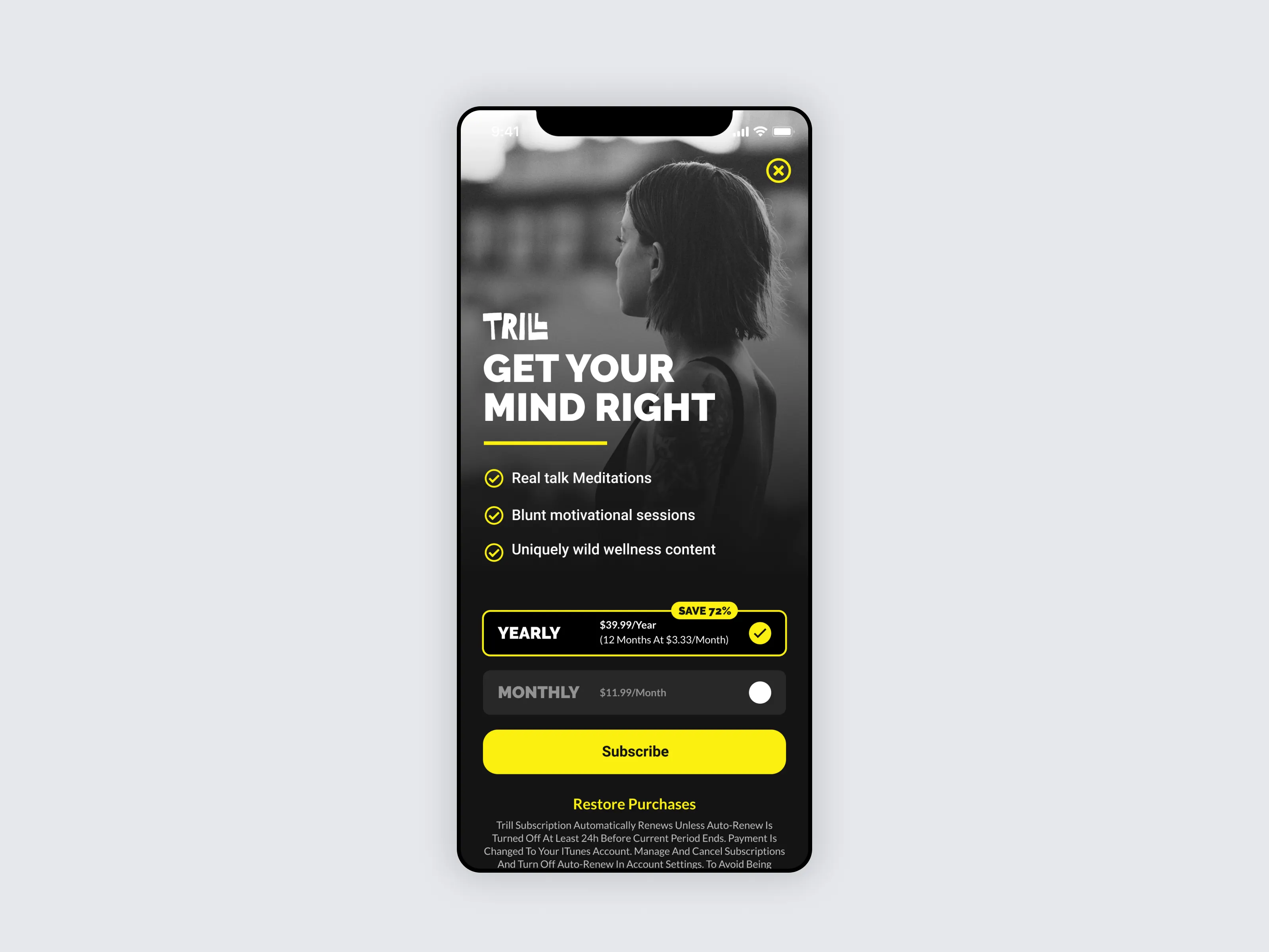 Mobile Subscription Screen